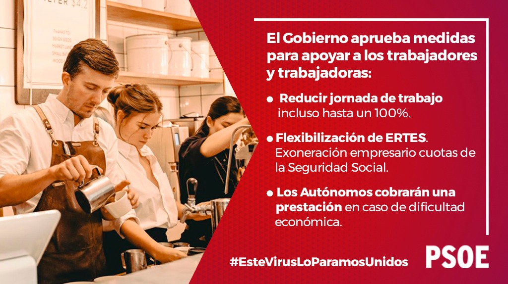 Exención del pago de cotizaciones a las empresas que hagan ERTE y no despidan. Una medida que busca priorizar la suspensión temporal de contratos y reducción de la jornada frente a los despidos.