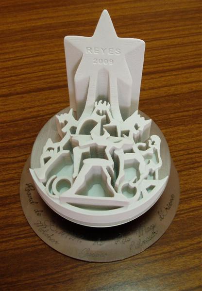 Los Reyes Magos de Oriente han visitado el despacho del Grupo Municipal Socialista para dejarles un regalo verdaderamente bonito, original y sobre todo de diseño. Una figura de la estatua de los Reyes Magos que es una simplificación conceptual de la figura original. El diseñador mantiene lo esencial del monumento dándole especial protagonismo a dos figuras, el niño y la estrella. Una versión muy original digna de ver. Por supuesto habrá para todos los gustos, a los que sólo guste la original, que también es magnífica, a los que les atraiga más esta abstracción y aquellos que se quedarían con las dos.