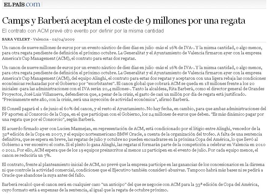 Es que no entendéis lo emocionante y atractivo que es este deporte. Dos o tres mil millones de personas atentos al televisor, con el nombre de Valencia en los labios, y dos o tres millones de puestos de trabajo (o 7, ya puestos…). La gente insultando al árbitro con lo que esto descansa. Bueno, sin ironías suscribo íntegramente las opiniones anteriores, pero además apunto: Hace ya seis años que Camps nos prometió en su programa electoral habitacion individual en los hospitales públicos. ¿Cuándo?. El hospital de Alcoy cada vez se va haciendo intransitable. Todos por el mismo pasillo. Buscando además trozos de solar donde hacer otra pequeña ampliación.
