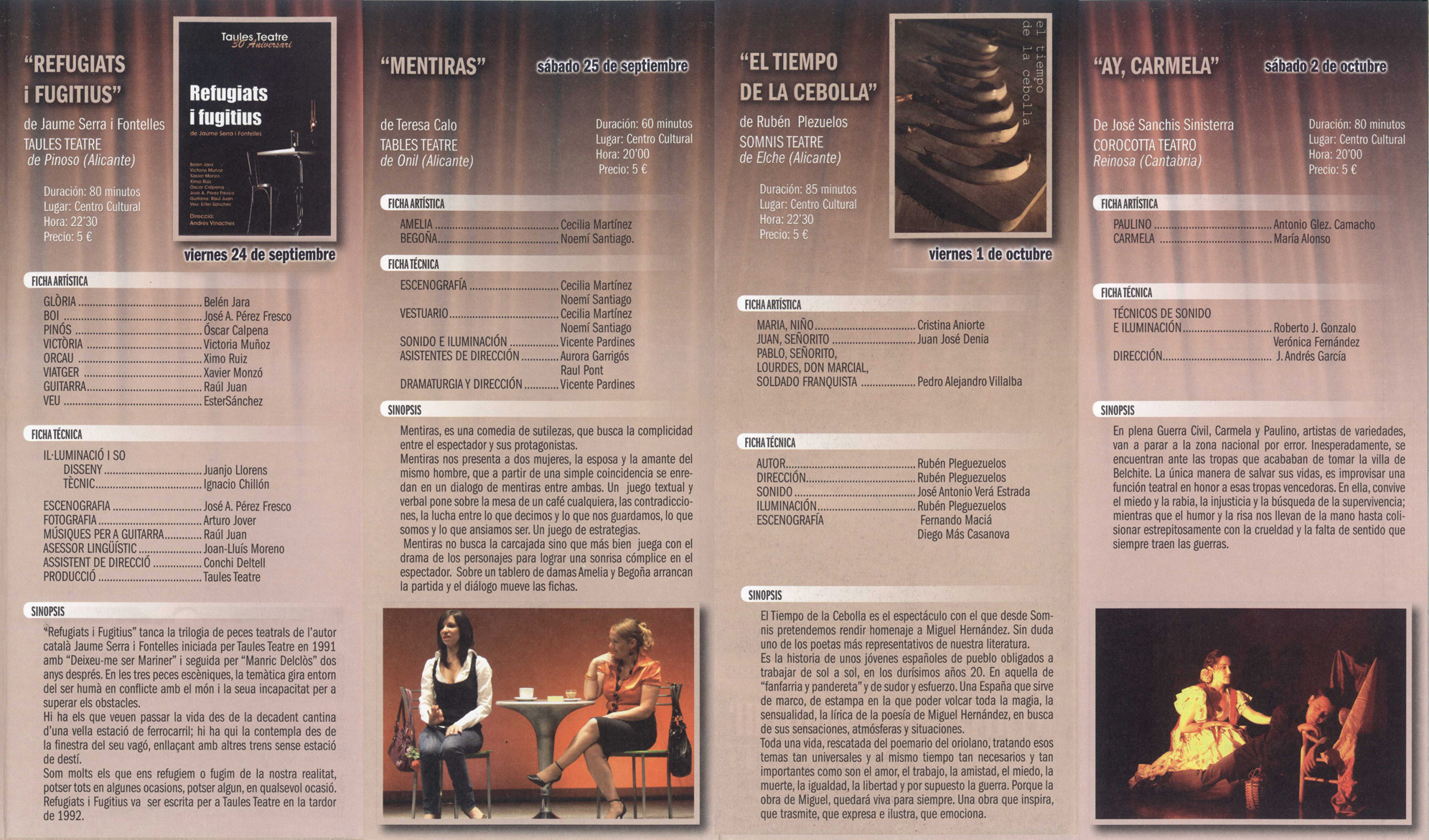 Dentro de esta programación se incluye el XVI Concurso de Teatro Amateur de la Villa de Ibi. Para esta edición que da comienzo hoy, se han seleccionado 5 obras de grupos amateurs, cuatro de estos proyectos de grupos de la Comunidad Valenciana y uno de Cantabria, que seguro no dejaran indiferente a los amantes del teatro.