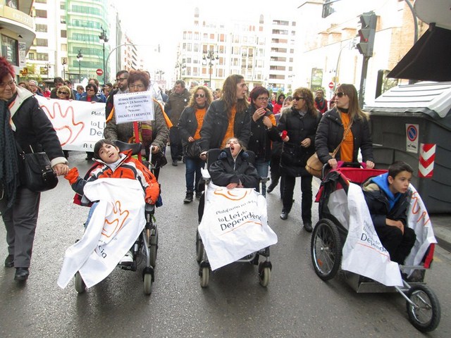 La iniciativa “Discapacidad en marcha, por el respeto y la dignidad” de los dependientes, sus familias y los profesionales que los atienden, llegó ayer a Valencia donde estuvimos para darles un fuerte abrazo y acompañarlos en el último trayecto por las calles de Valencia.