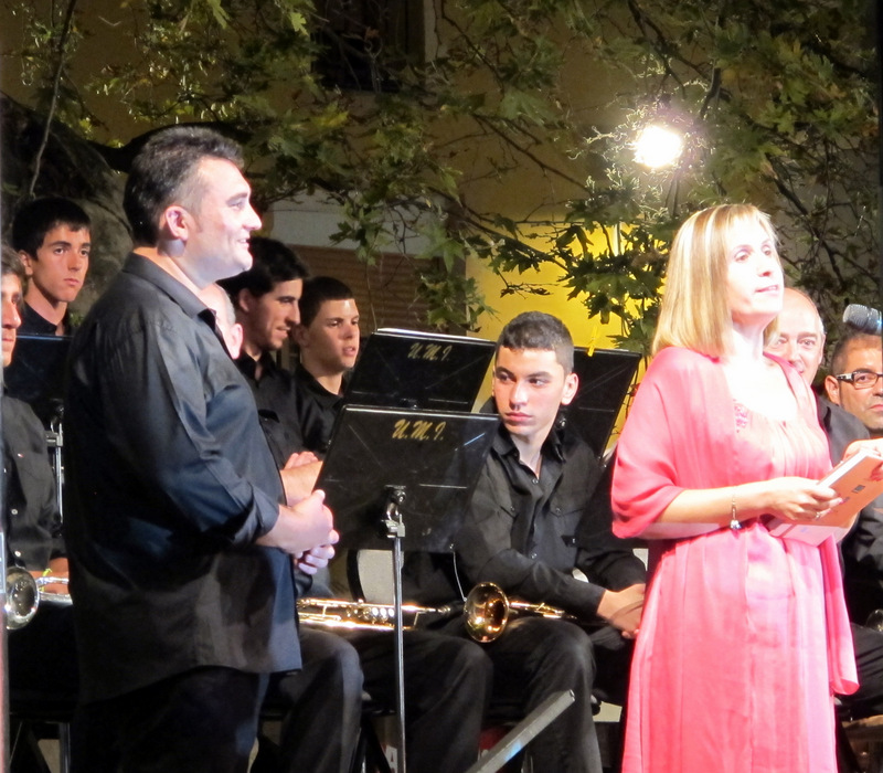 El acto estuvo presentado por la periodista de Radio Ibi, Lola Manso quien invitó a dirigir unas breves palabras tanto al presidente de la Banda Alberto Abad, a su director Andrés Colomina así como al Concejal de Fiestas.