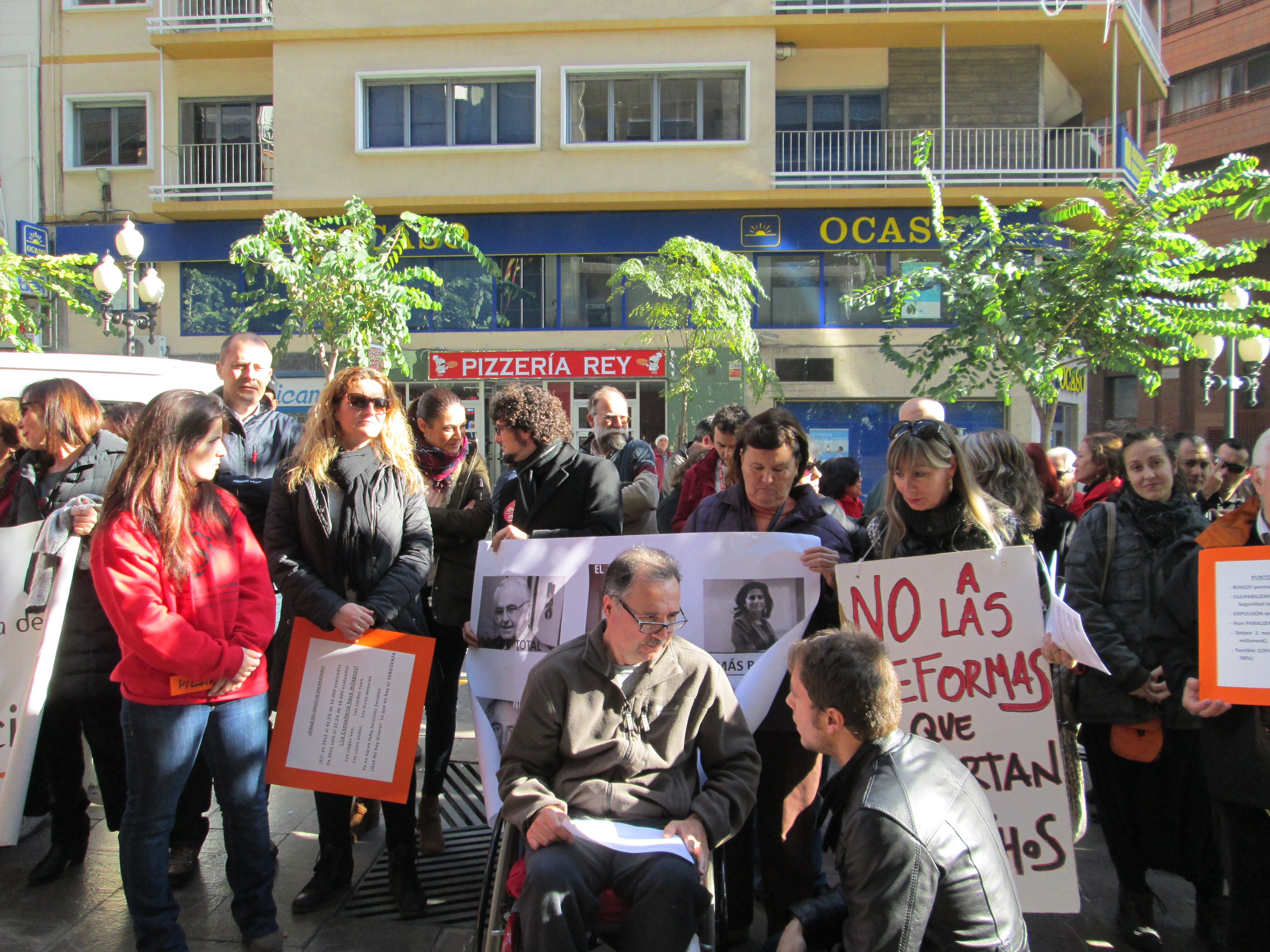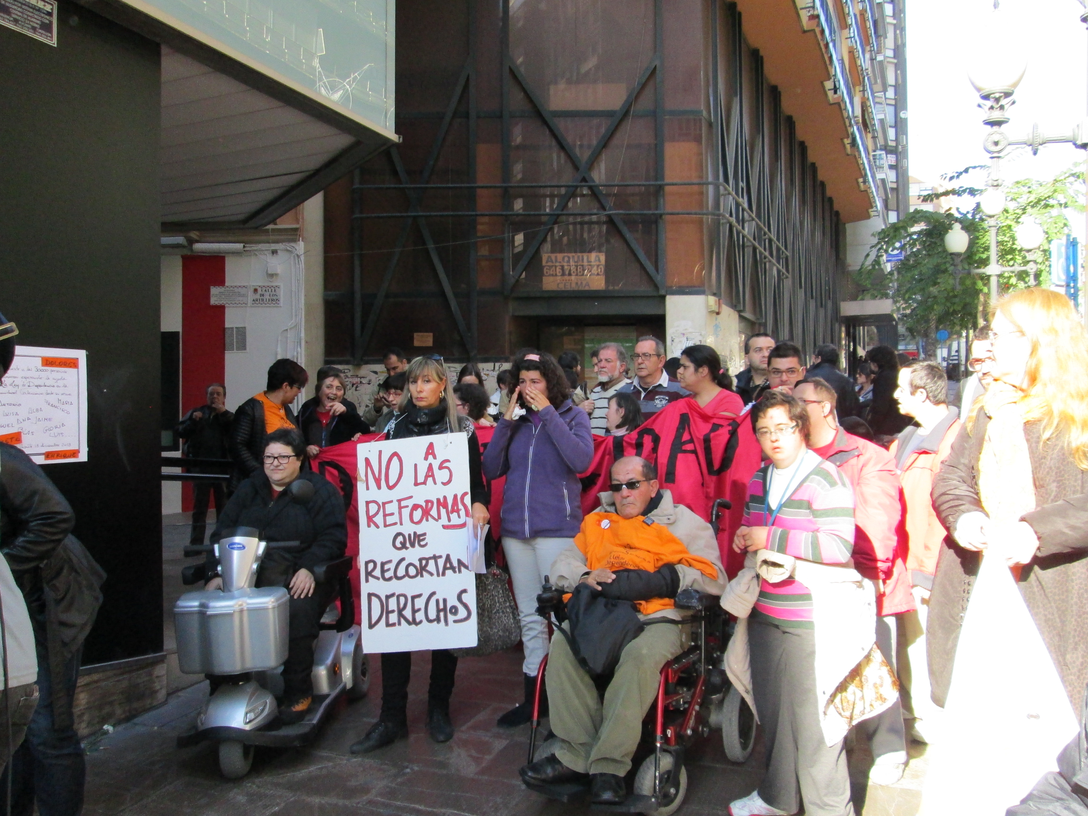 El pasado viernes, representantes de la Plataforma en Defensa de la Ley de Dependencia de la comarca estuvimos en la puerta del PROP en Alicante junto a la Plataforma de Alicante, vecinos, dependientes alicantinos y sus familias, diputados del PSPV-PSOE, EU y COMPROMIS en las Cortes valencianas y apoyados por todos los integrantes de la «Marcha por la Discapacidad», reivindicando lo que es justo por pura humanidad, que las personas dependientes y sus familias estén totalmente atendidas. En el 7º aniversario de la aprobación de la Ley de Autonomía Personal y Ayuda a la Dependencia somos muchos los que seguimos luchando por una ley que es de todos y para todos y que bajo ningún concepto debería paralizarse o boicotearse. El concejal de servicios sociales de Ibi, Juan Valls, ya ha anunciado que estará “sobre el tema” y exigirá a la Generalitat todos los derechos de los dependientes, pero lo cierto es que en el pasado pleno voto junto al PP en contra de exigir a Fabra la rehabilitación integral del Centro de Educación Especial Sanchís Banús. El Partido Popular de Ibi dice defender los derechos de tanta gente que exige el derecho a servicios para una mejor calidad de vida de las personas dependientes y sus familias, pero en la Comunidad Valenciana el Partido Popular le ha dado la espalda a una de las mejores leyes de toda la historia democrática de nuestro país. Del dicho al hecho hay mucho trecho y la demagogia política del PP no tiene fin, a nivel nacional, autonómico y local.