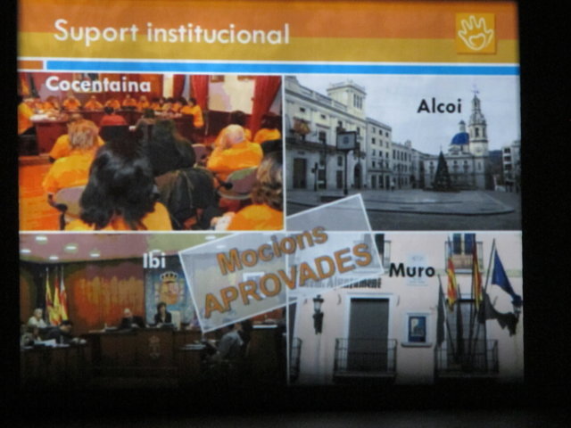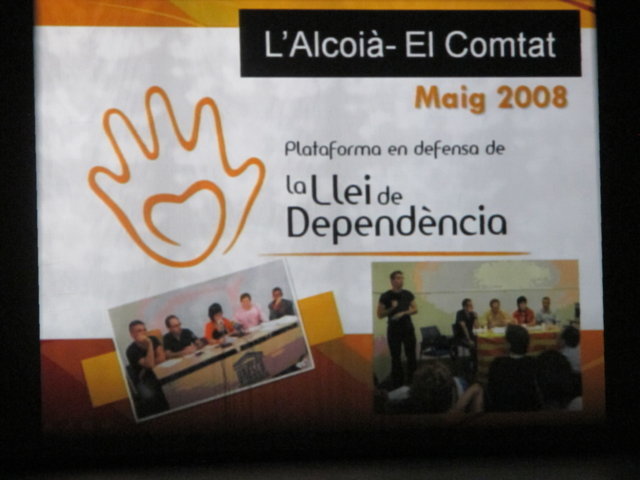 Agraïm també als alcaldes presents a l’acte (Alcoi, Muro i Cocentaina), així com a la resta de representants de les diferents formacions polítiques, l’assistència a l’acte. A ells els correspon també ara actuar, amb valentia i honradesa, a les institucions on ens representen. Lamentem que cap representant del PP de la comarca assistira a l’acte. No és casualitat que precisament aquells que ens han abocat a aquesta situació i que ens fan retrocedir tots els dies a passes agegantades a l’Estat del Benestar, no ens vulguen escoltar i saber quina és la realitat que viuen els dependents dia a dia. Tan sols volem recordar-los que aquells que precisen de l’atenció d’altra persona per a desenvolupar les activitats de la vida quotidiana 24 hores al dia no han escollit ser dependents, simplement ho són. El govern hauria de saber que els dependents no són un número en un paper sinó que son sers humans que senten i somnien. Que no reclamen tan sols una ajuda econòmica sinó millorar la qualitat de vida no sols de la persona dependent sinó també de les famílies que estan darrere.