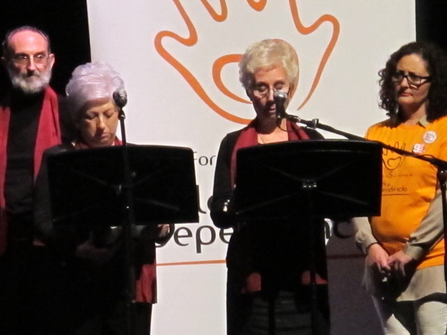 L’aprovació d’aquesta de la Llei de Dependència havia sigut una esperança, una finestra oberta al mal temps, però la incompetència a portar-la endavant amb equitat de qui ens governa, ha provocat el nostre desencís. Per tot això, amb actes com el d’anit, reclamem el suport de tota la ciutadania en esta lluita que no és nostra sinó de tots i totes. Perquè recorden: “TOTS PODEM SER DEPENDENTS, NO HO OBLIDES TU TAMBÉ!”