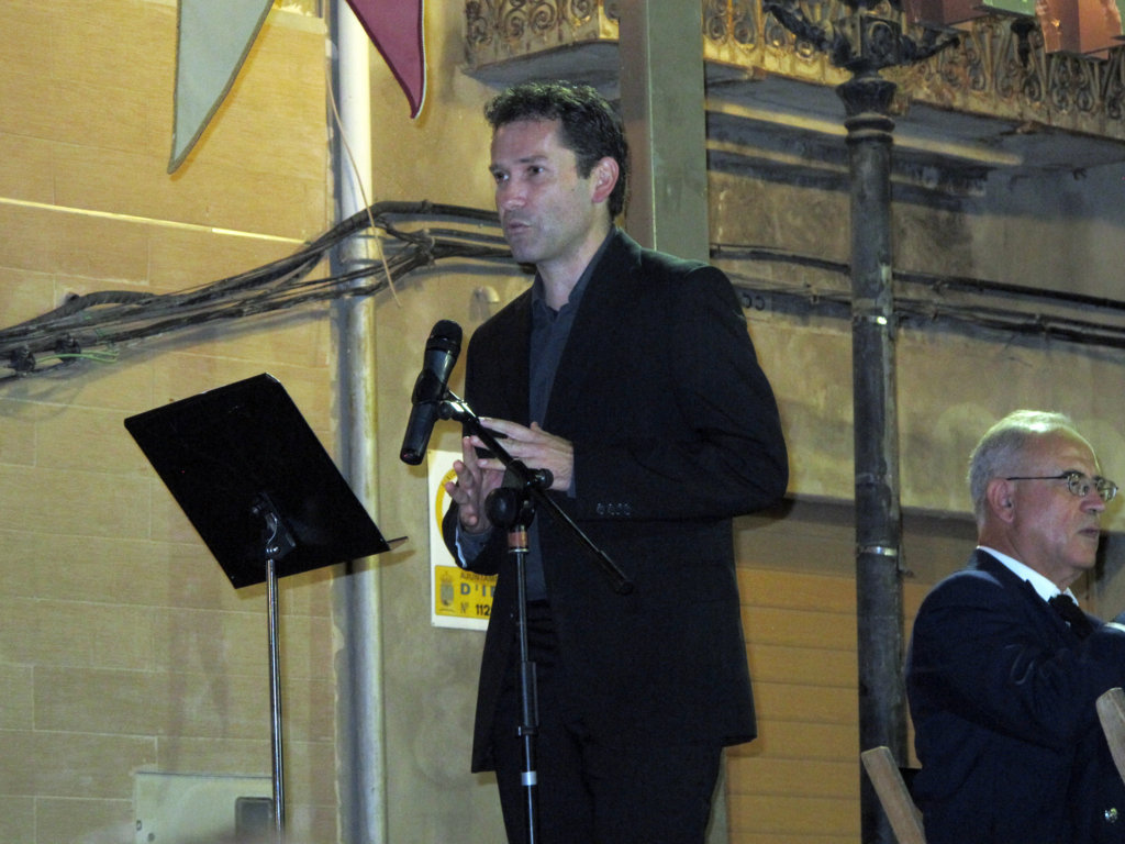 Tras meses de pertinente sequía, esa misma tarde, por un corto espacio de tiempo, vimos caer unas gotas, que si bien se agradecían por la falta que hacían, fueron suficientes como para poder escuchar de boca de los vecinos “Cal que ploga… però precisament avui, que és el concert al castell…”. Efectivamente, se celebraba el esperado CONCERT EXTRAORDINARI DE MUSICA FESTERA. Como todos los años, la Unió Musical de Ibi -dirigida por D. Andrés Colomina Bernabeu- nos ofreció un concierto que,por la calidad de las piezas interpretadas, la magistral interpretación y el telón de fondo -luna llena incluida- nos introducía directamente en nuestras fiestas septembrinas.