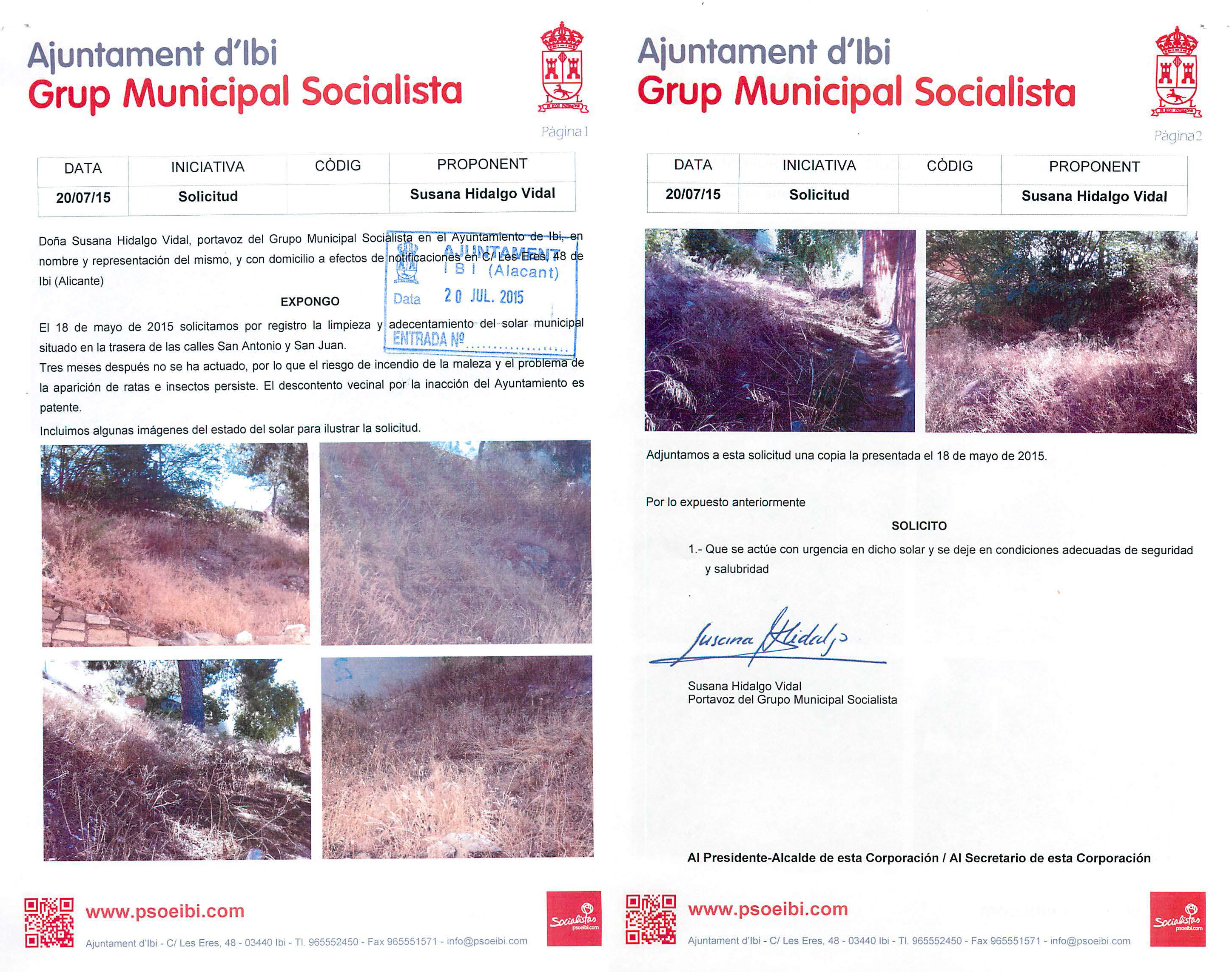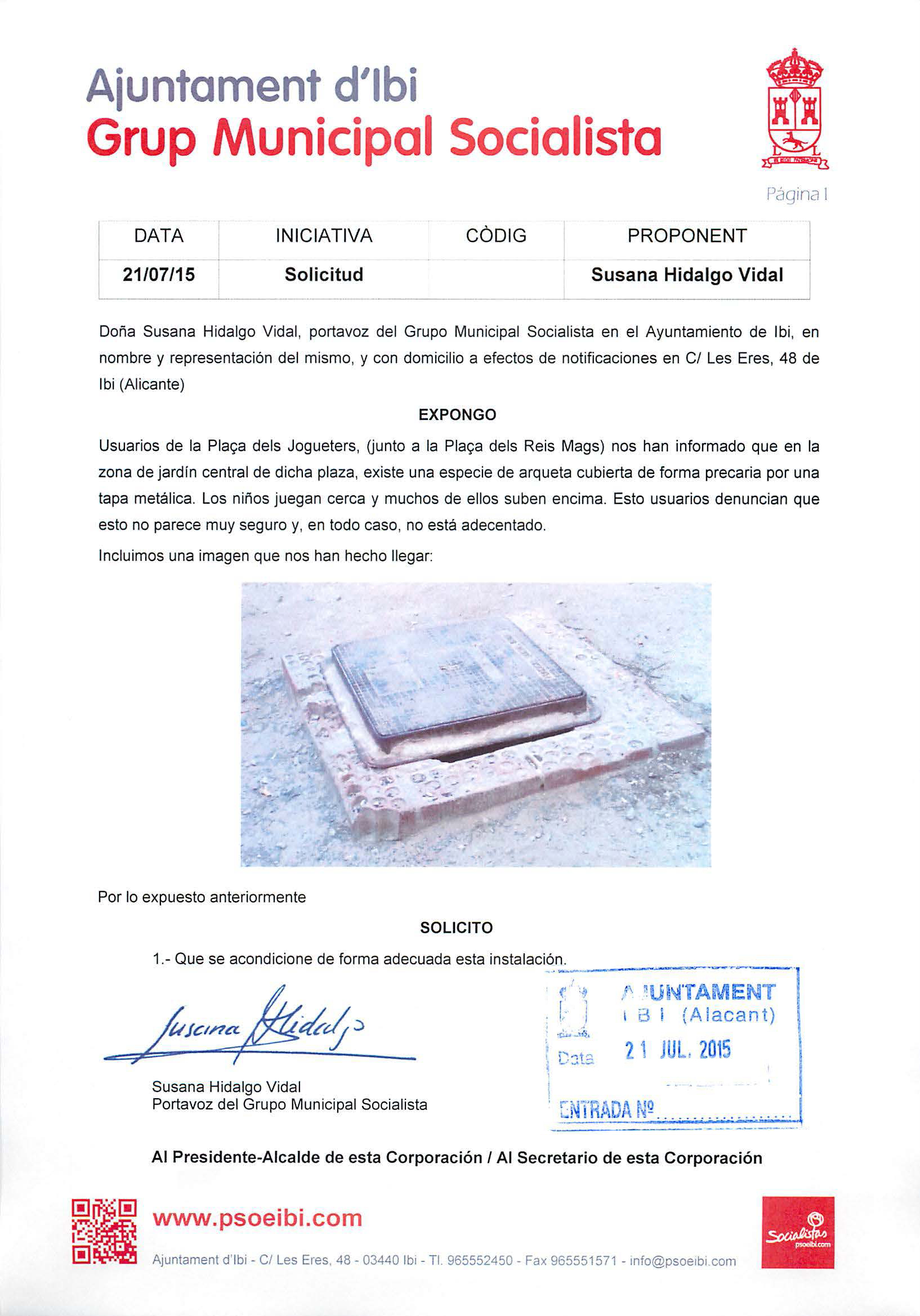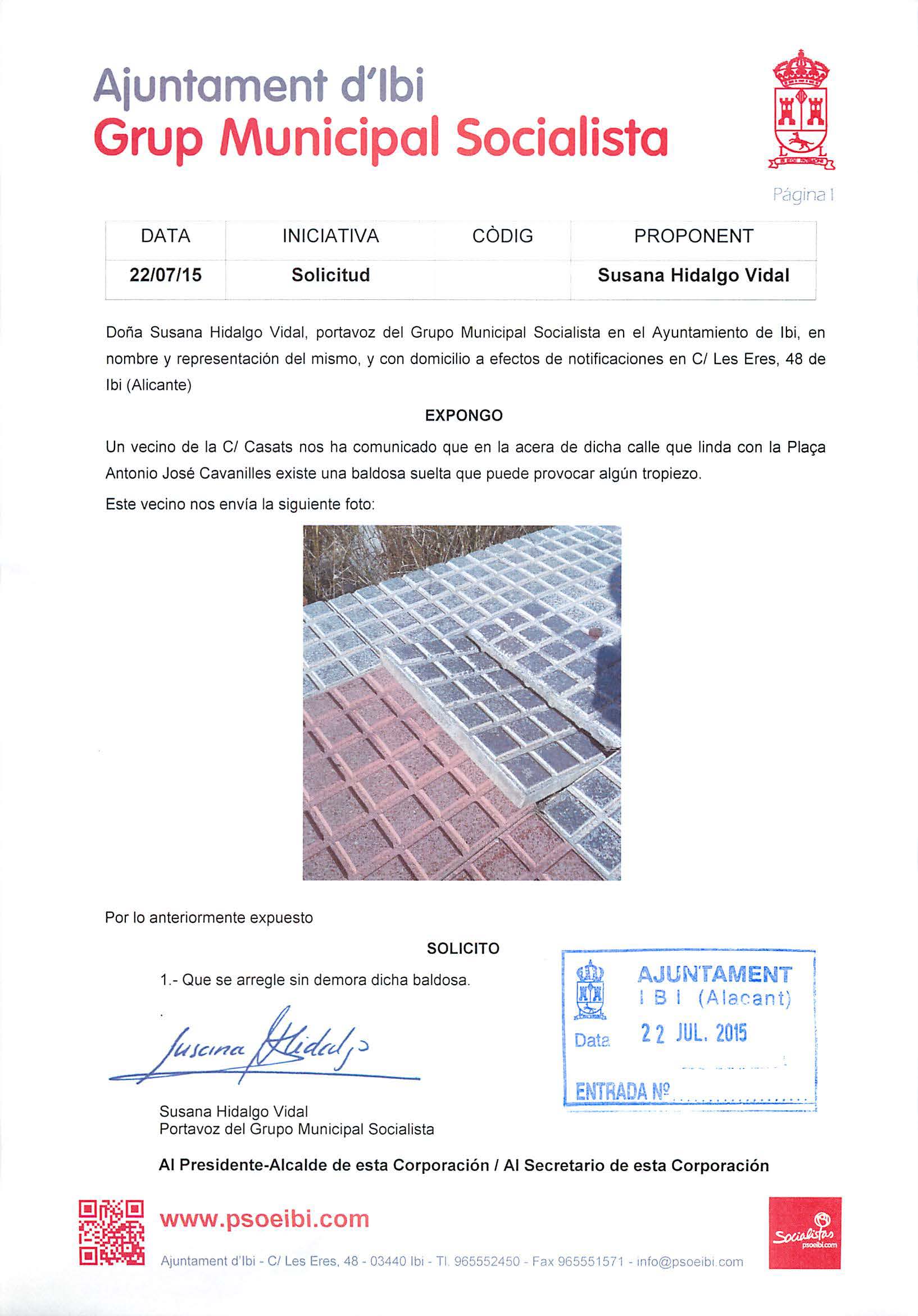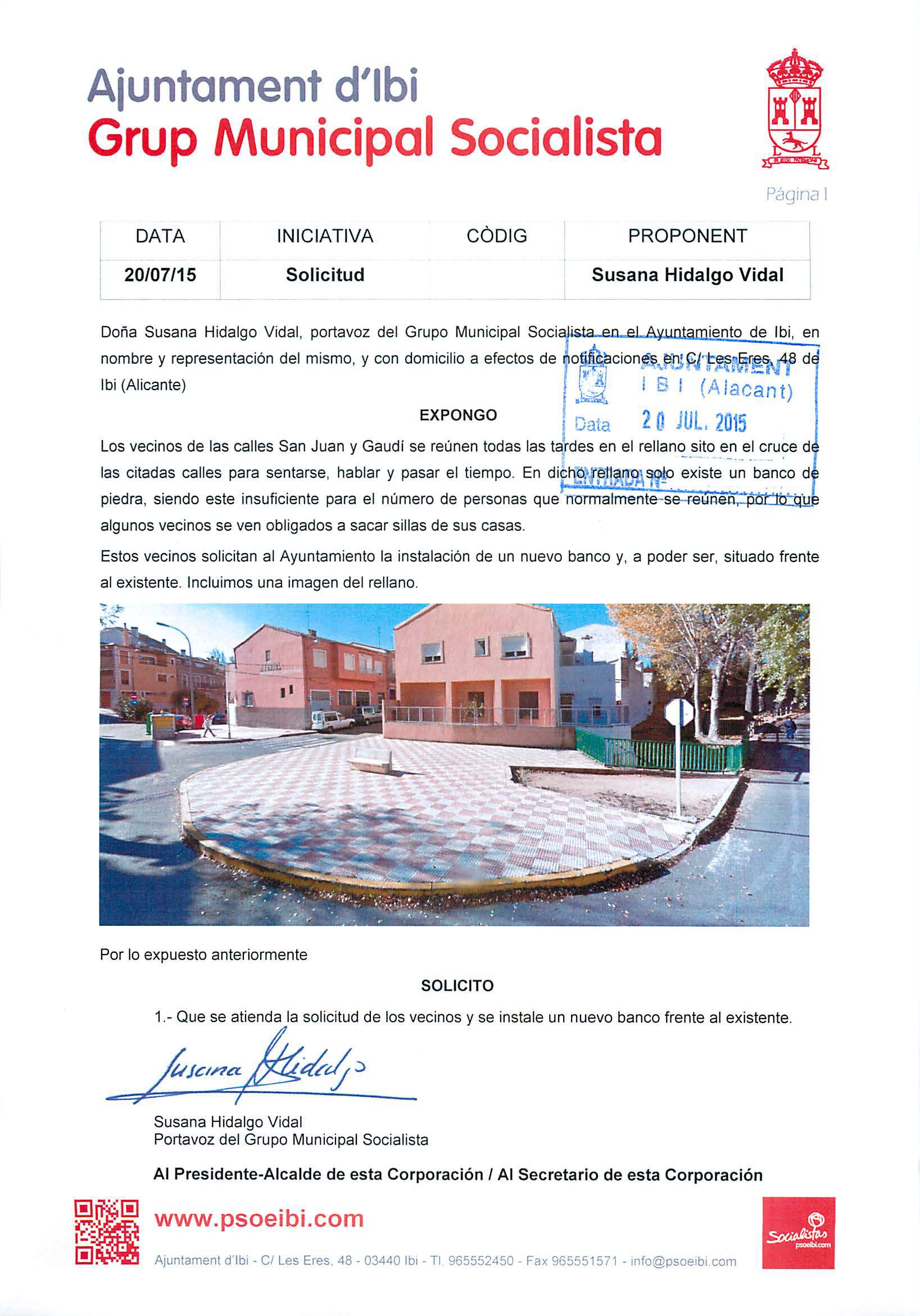 Los ciudadanos ibenses nos siguen haciendo llegar sus peticiones para que desde el Grupo Municipal Socialista le demos tramitación oficial y las defendamos.