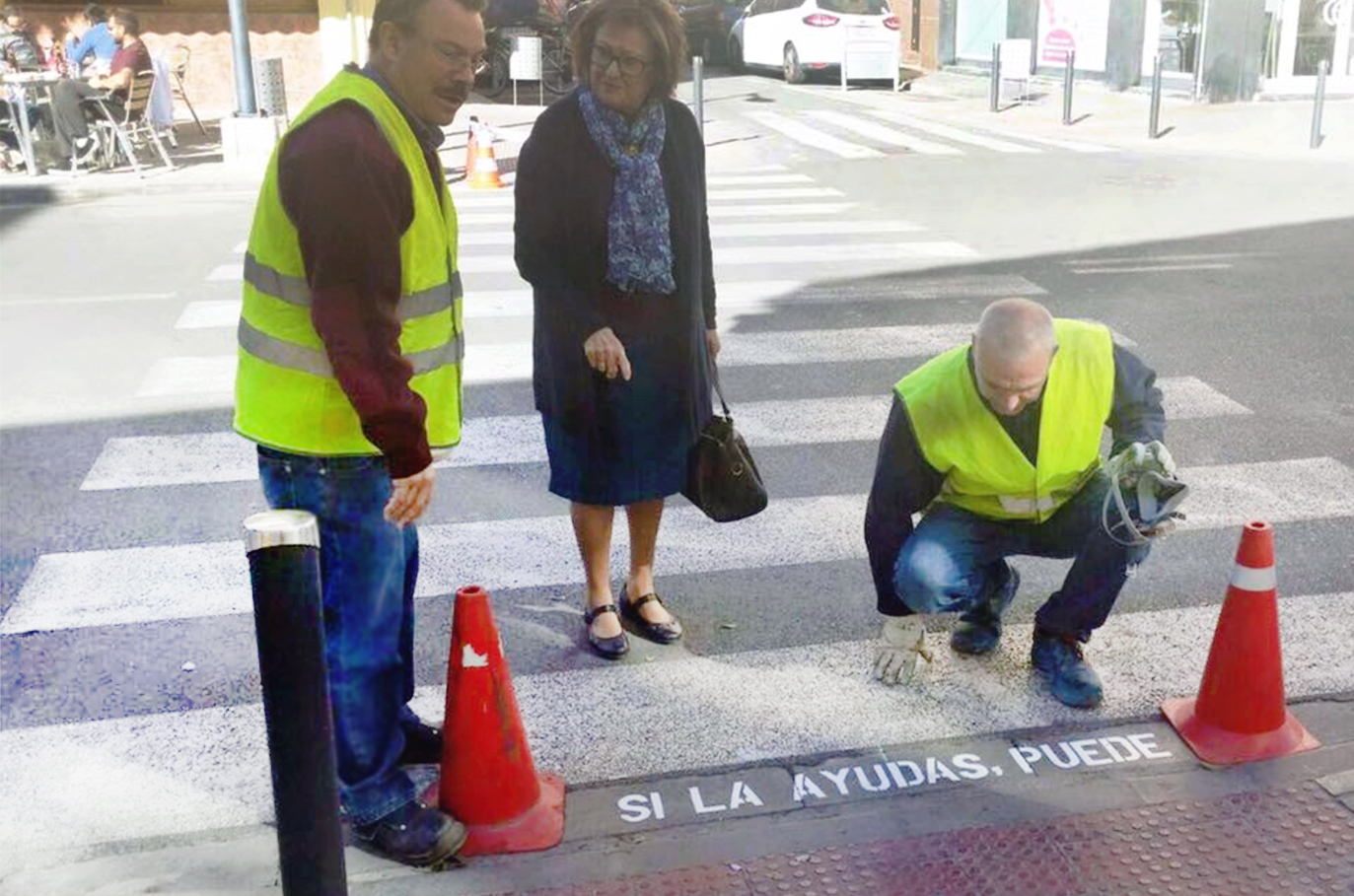 El pasado 16 de noviembre de 2016, el Grupo Municipal Socialista registró una propuesta de acuerdo para que se rotularan en los pasos de cebra de Ibi, junto o sobre el bordillo, frases contra el maltrato, como medida para “avanzar en la igualdad y combatir la violencia machista” (para ver la propuesta, pincha aquí). Esta iniciativa ya ha sido tomada en multitud de municipios, como Mislata o Linares. En Orihuela se llevó a cabo esta acción con frases de Miguel Hernández. En Vitoria-Gasteiz los pasos de peatones se han pintado con consejos para reducir los atropellos y con los derechos de la infancia. El Ayuntamiento de Madrid rotuló los pasos de cebra con versos para homenajear a los artistas y poetas de la capital.