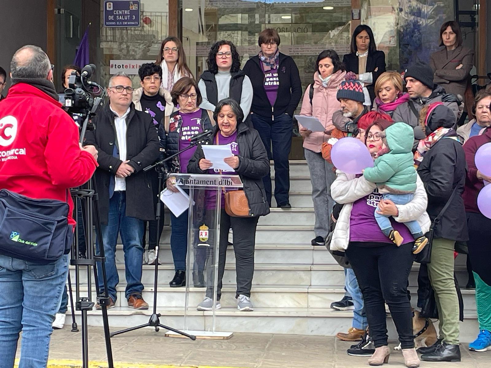 Hoy a las 13h, frente a las puertas del Ayuntamiento, ha tenido lugar la lectura del manifiesto en conmemoración del 8M, Día Internacional de la Mujer, tanto de la Asociación de Mujeres Mariana Pineda, como el manifiesto institucional, respaldado por tres de los cuatro grupos municipales de Ibi. Dichos manifiestos reafirman el compromiso con la igualdad de género y el empoderamiento de las mujeres de la sociedad ibense y de la gran mayoría de los representantes públicos.